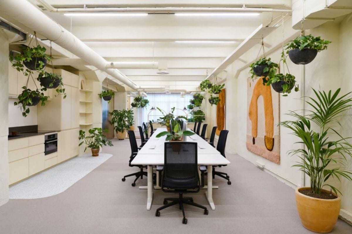 Mẫu thiết kế văn phòng phong cách Industrial kết hợp cây xanh