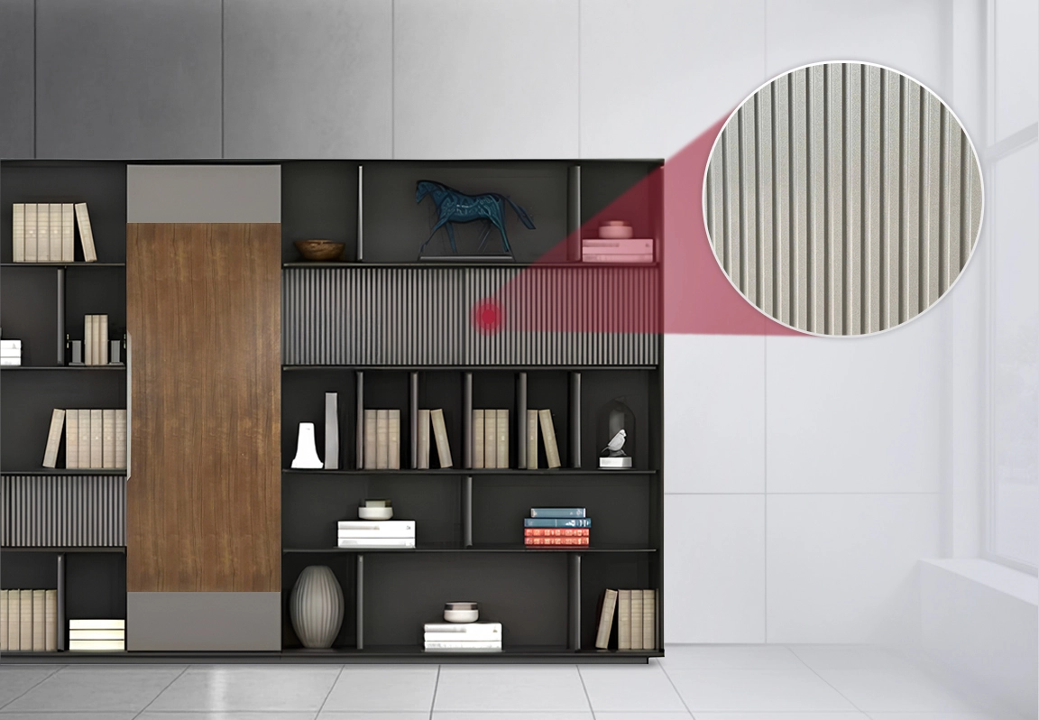 Hệ ngăn trượt thiết kế dạng lam sóng chạy dọc theo chiều cao ngăn kéo, tạo hiệu ứng chiều sâu 3D sống động. Chính sự tinh xảo trong từng đường nét này đã biến mỗi ngăn kéo trở thành một tác phẩm nghệ thuật, khẳng định gu thẩm mỹ tinh tế và đẳng cấp khác biệt.
